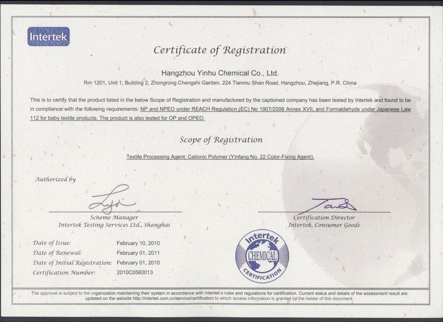 Intertek certificate of Yinfang No.22
